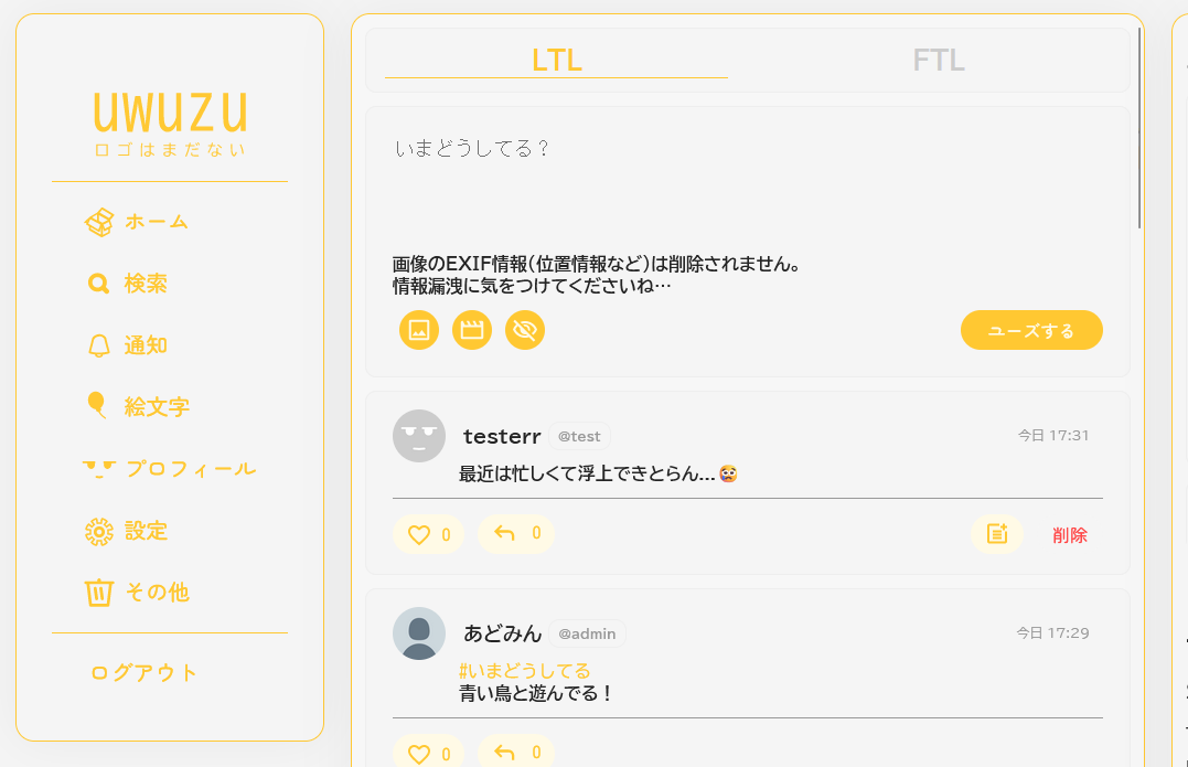 今現在uwuzuはFediverse(ActivityPub)部分対応ですが今後のアップデートにより少しずつ分散型への道へ入る予定です!