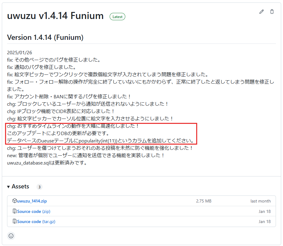 以下のリンクよりuwuzuの最新バージョン(uwuzu_XXXX.zipの形式)をダウンロードしてください!
