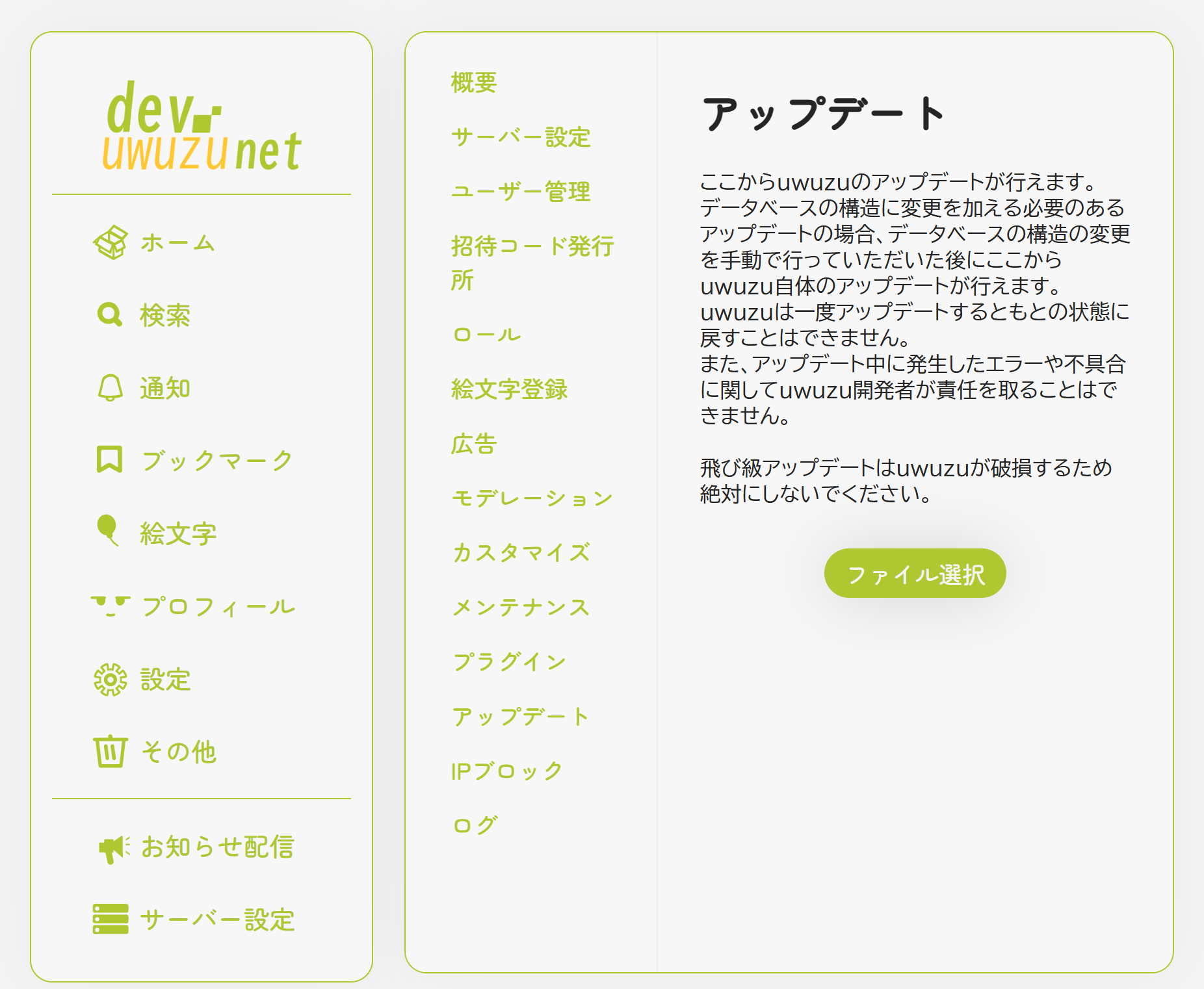 ご自身のuwuzuサーバーを開き、サーバー設定→アップデートへ進んでください!