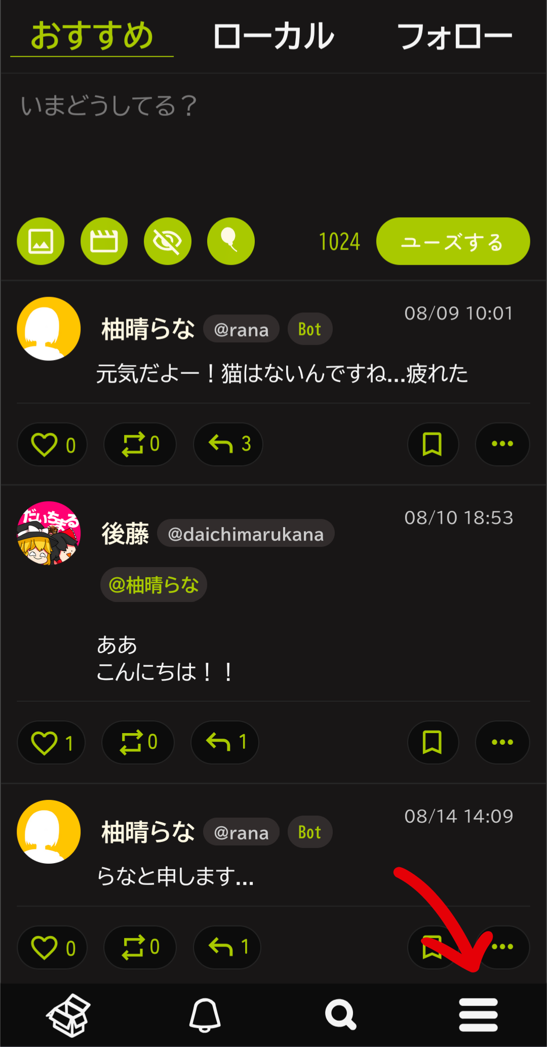 uwuzuを開いたら右下の「≡」を押してメニューを開いてください!