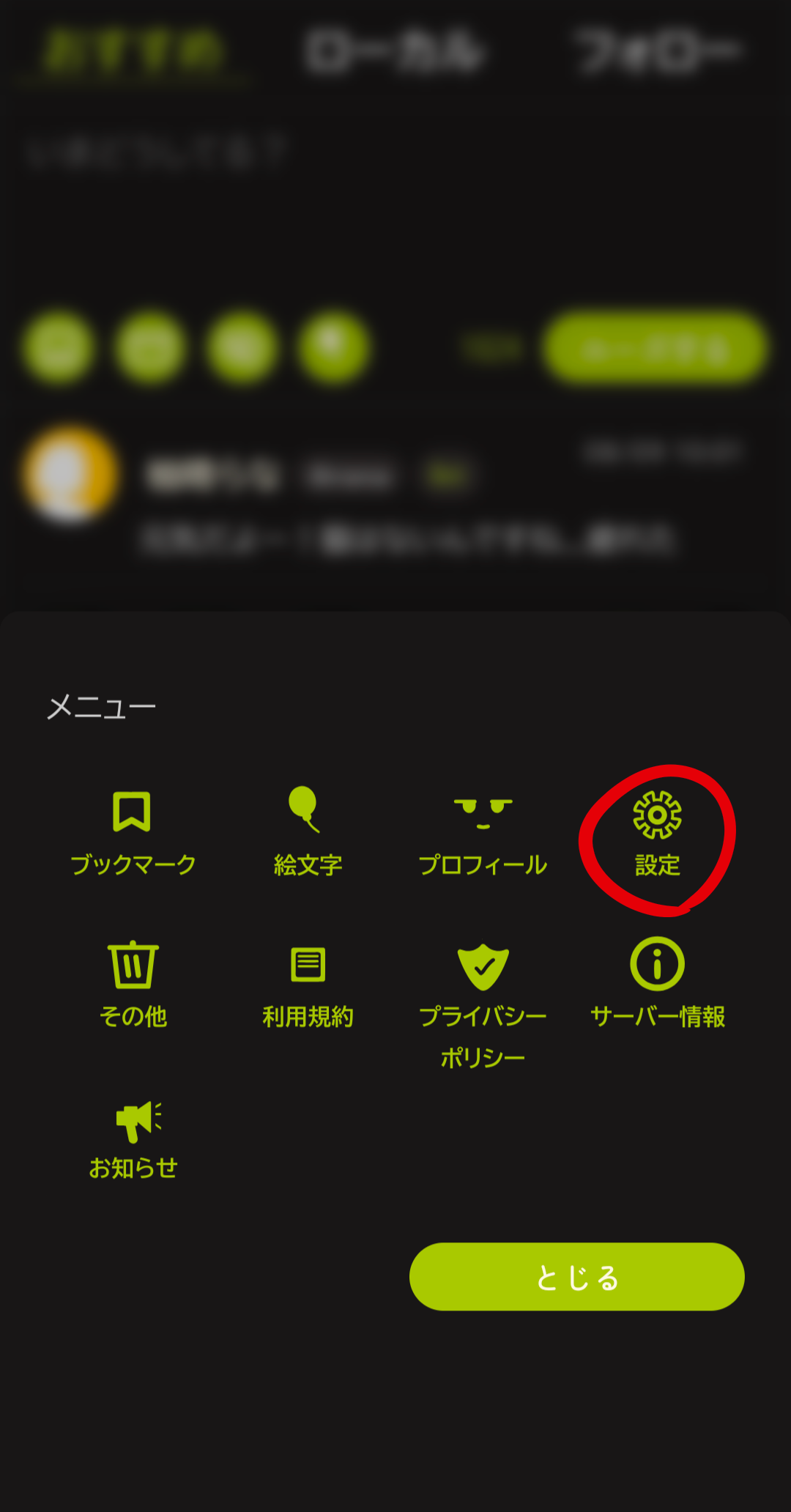 メニューから歯車マークの設定を開いてください! 二段階認証の解除もここから行えます。