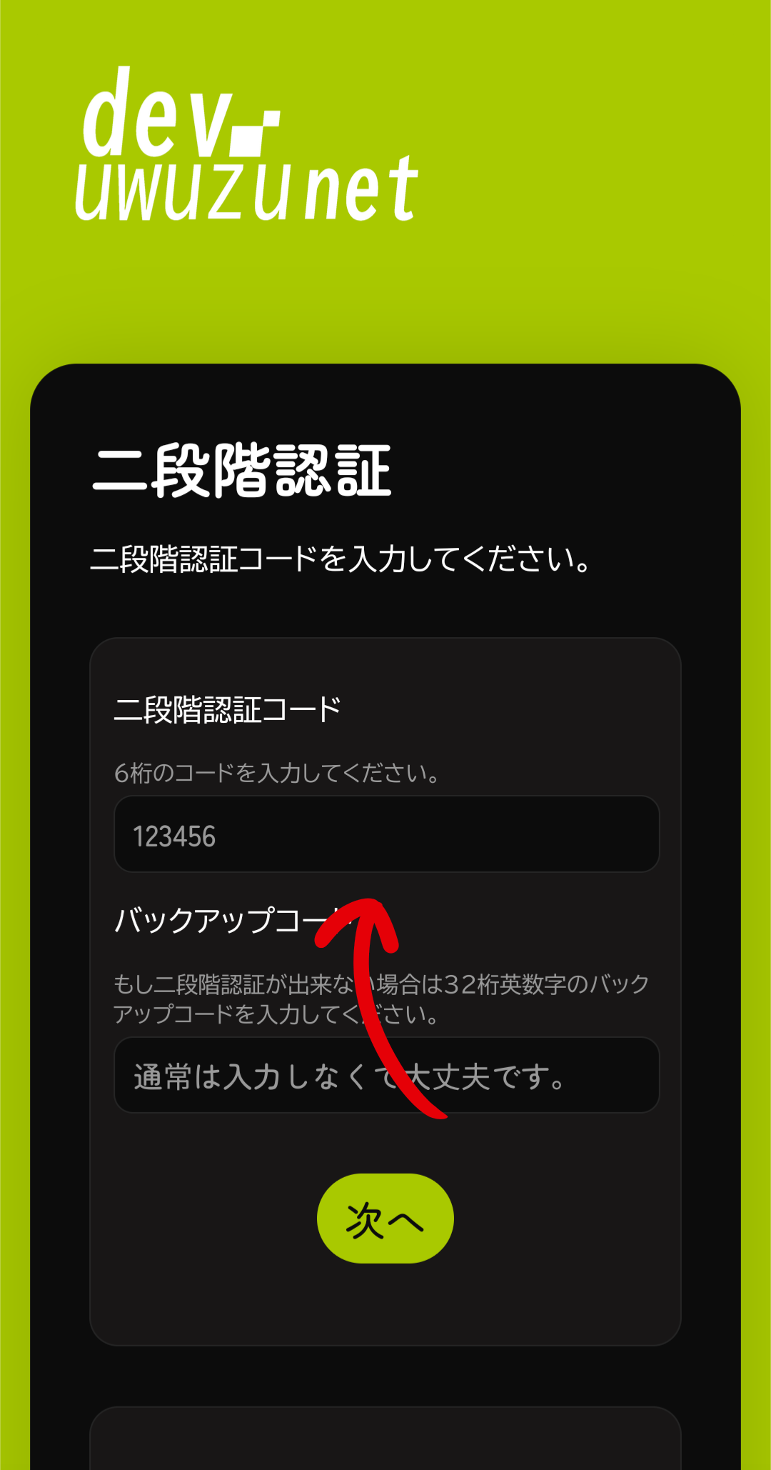 uwuzuに戻って、入力欄に番号を入れます。