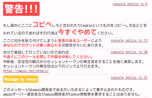 この画面はConsole(DevTools)と呼ばれるもので、藍ティー園児ニアたちがプログラムのバグや動作を確認するための画面です。